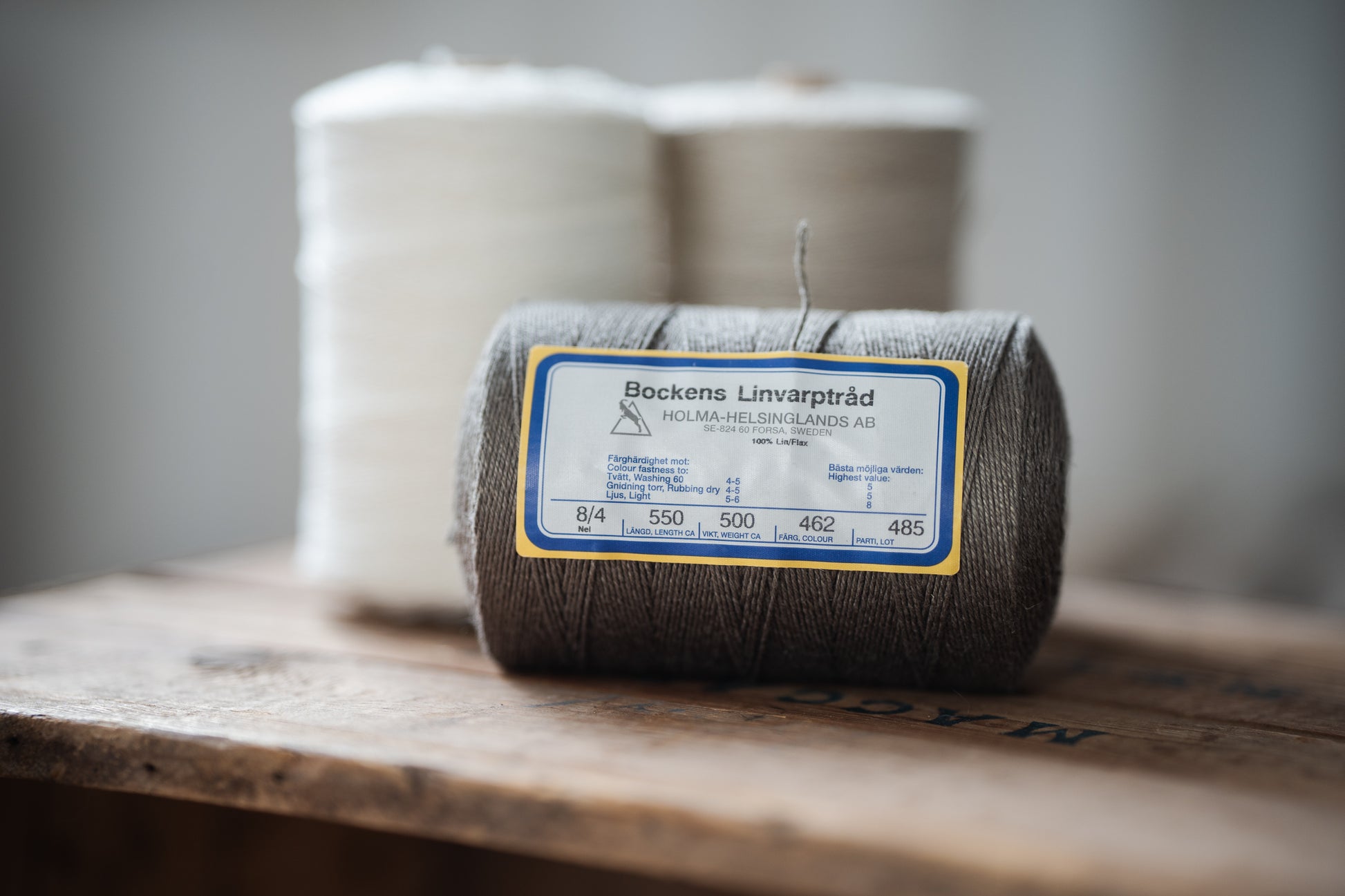 Bockens Linvarptråd från Holma-Helsinglands AB är en högkvalitativ och stark varptråd, tillverkad av 100% lin. Den spinns med fokus på att ge en jämn och stabil struktur, vilket gör den idealisk för vävning av hållbara och långlivade textilier. Linets naturliga styrka och lyster gör att tråden fungerar utmärkt som varp i vävstolar, där den bidrar till både stabilitet och en vacker finish. Bockens Linvarptråd finns i olika grovlekar och färger, vilket gör den flexibel för olika typer av vävprojekt, från tunna gardiner till robusta dukar och möbeltyger.
